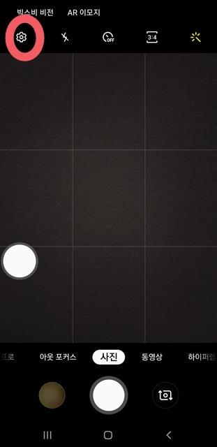 먼저 카메라 어플로 들어가세요. 갤럭시 기준 공식 카메라 앱만 가능합니다. 상단에 톱니바퀴 모양의 설정에 들어가시면 됩니다. 이 기능은 모르시는 분들이 많습니다. 카메라에서 GIF 만드는 방법 알아두시면 쓸모가 많을 것입니다.