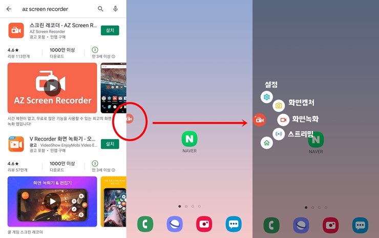 AZ 스크린 레코더로 네이버 앱 녹화 화면