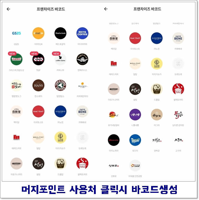사용방법은 해당하는 가게에가셔서 해당하는 매장을 클릭하시면 됩니다. 신용카드나 체크카드 혹은 다른 포인트적립할때의 방식과는 조금 다릅니다. 매번 똑같은 바코드가 아닌 그때그때마다 새로운 바코드,포인트번호가 생성되어서 결제할때마다 방문한 매장과 나의 스마트폰 머지포인트 어플에서의 결제장소와 브랜드가 일치해야만 결제가 가능합니다.