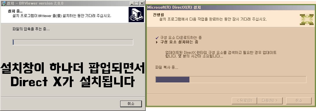 설치도중에 Direct X라고 뜨면서 다른 프로그램을 다운받는데 비알뷰어를 사용하기위한 프로그램이니 안심하고 그대로 진행하셔도 됩니다.