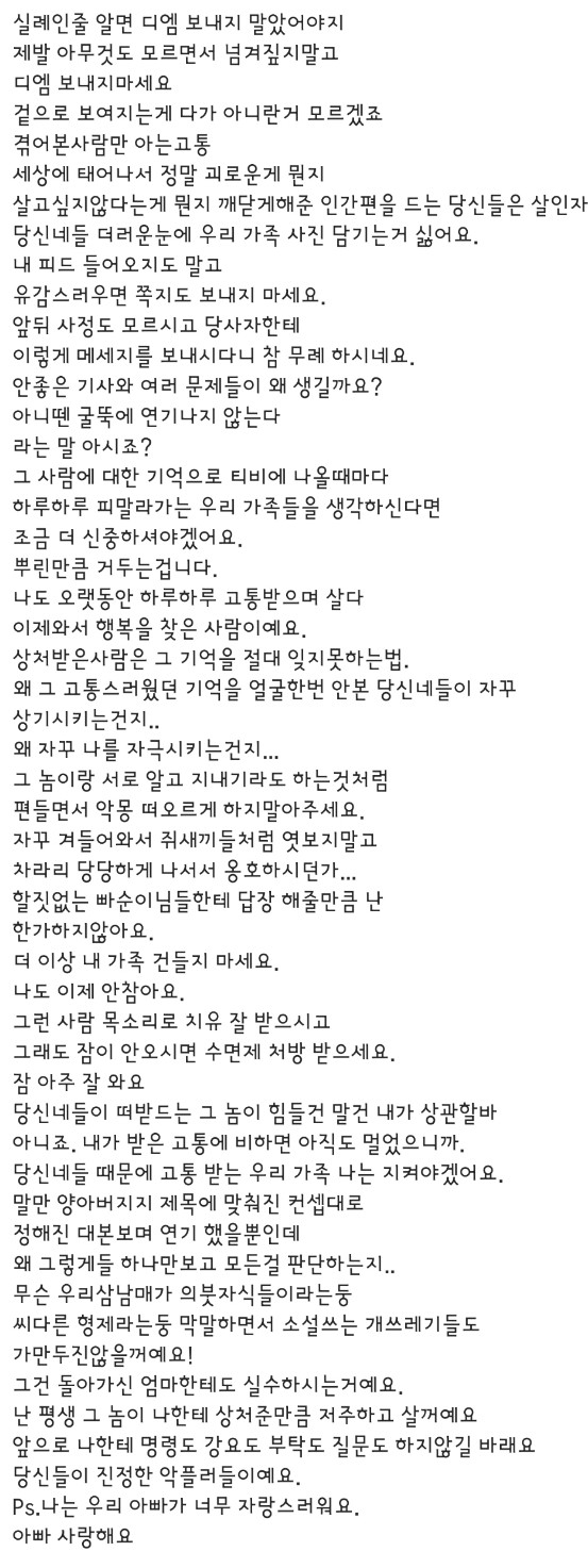 이야기를 들었다는게 지금 아버지의 폭행 논란 전문입니다