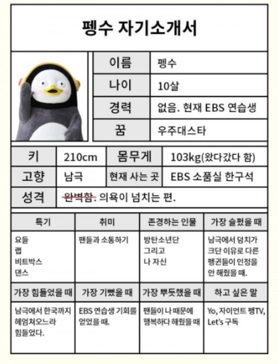 펭수는 펭수 그자체만으로 펭수의 원래모습이 공개되길 꺼려하시는분이 많았습니다