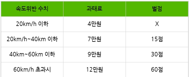 20km이하 넘겼을때는 벌점은 없지만 과태료는 4만원 입니다.