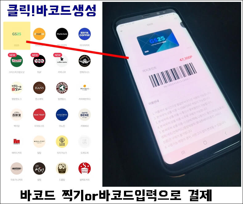 결제방법은 굉장히 간단합니다. 어플에서 마이존을 보시면 가장 가까이 위치하는 매장이 뜹니다. 그 매장을 클릭하시면 바코드가 뜨게 됩니다. 직원에게 보여주시면 바코드를 찍으시거나, 모바일쿠폰번호 입력창에 머지포인트 바코드번호를 입력하게되면 결제가 되고, 내 어플에는 결제되었다는 알림과 금액이 뜨게 됩니다.