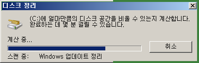 시작 버튼> 프로그램 파일 검색창에> 불필요한 검색 하시면 불필요한 파일을 삭제하여 디스크 공간 늘이기가 뜹니다.
