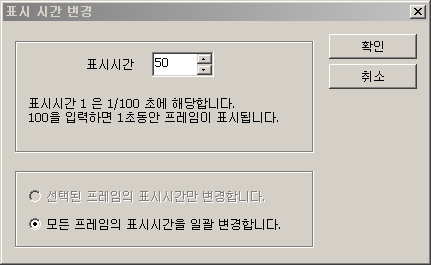 오른쪽에 보시면 표시 시간 병경 전환 효과 변경 크기 조절 등이 있습니다.