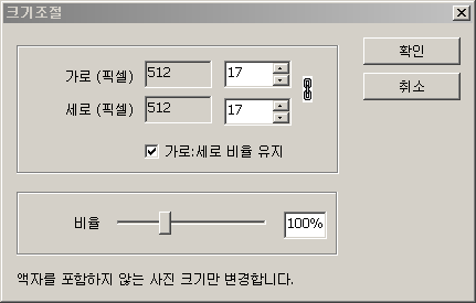그리고 크기 조절을 하시는데 17X17 사이즈로 설정해 주세요.