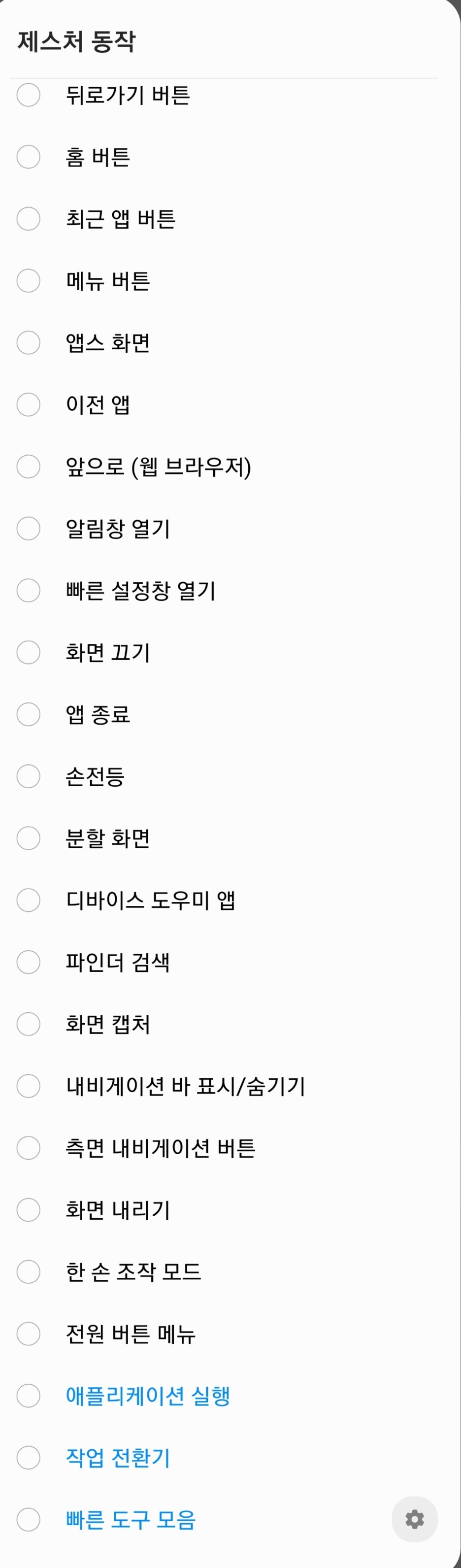 제스처 인식 동작으로는 다양하게 있죠? 제가 주로 사용하는 동작은 뒤로 가기 버튼과 빠른 도구 모음 그리고 화면 캡처입니다.