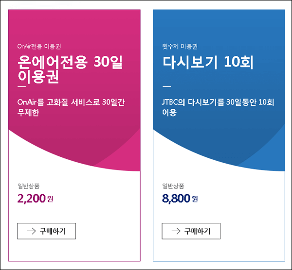 온에어 전용 30일 이용권은 한달에 2,200원 입니다.