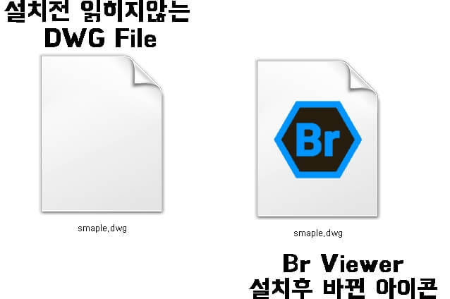 설치 하기 전 DWG파일은 읽히지 않습니다. 프로그램을 설치하니 아이콘이 변경되고 실행이 아주 잘됩니다.