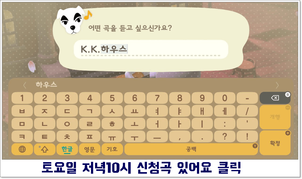 신청곡 있어요 항목을 선택/ K.K 하우스를 입력하시면