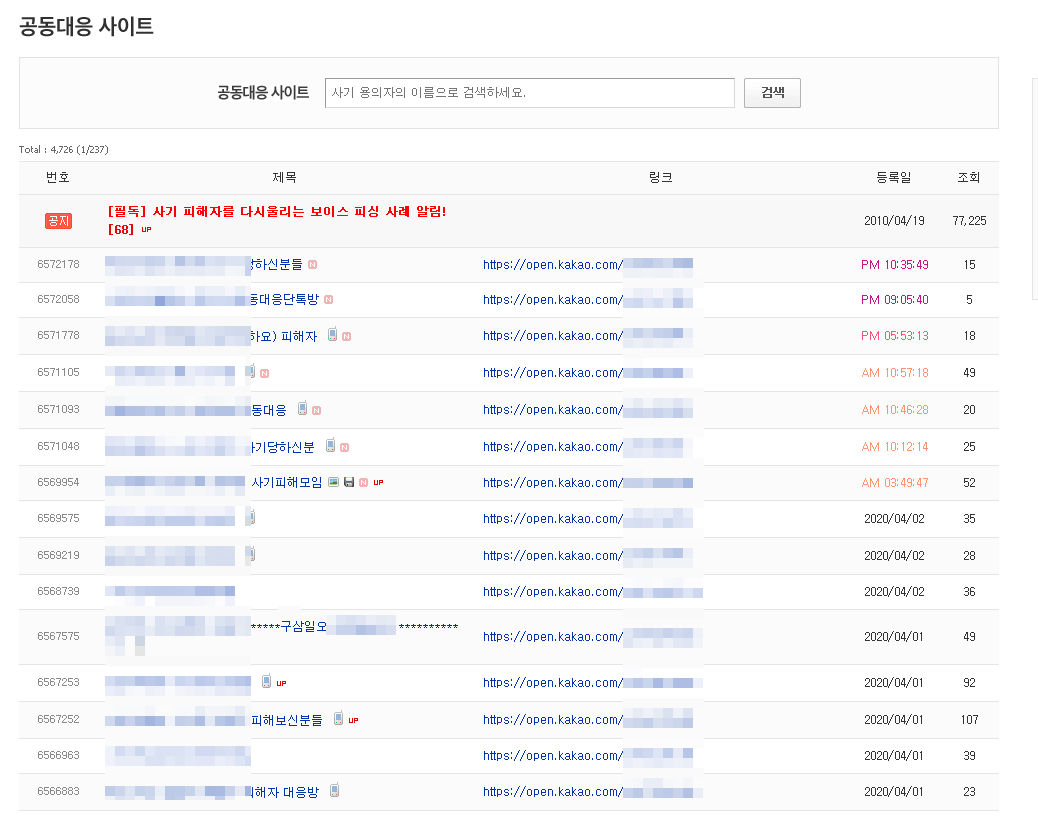뿐만아니라 실시간으로 확인한 물건에 대해서도 실시간 글을 공유하여 피해를 최소화 할 수 있습니다. 다자가 사기에 당했을때는 공동대응 채널을 만들어서 같이 정보를 공유하여 함께 범인을 잡아내거나 소송을 같이 진행한다고 합니다. 이러한 기능들이 굉장히 좋은 역활을 해주고 있는것 같습니다. 중고거래시 꼭 들어와서 한번만 검색을 해보신다면, 소중한 자신의 돈을 지킬 수 있습니다. 고액이 아니더라도 단돈 1~2만원이라도 내돈을 뺏기면 서럽고 짜증나고 화나기는 마찬가지 입니다. 잠깐의 검색이 큰 도움이 될것 같습니다.