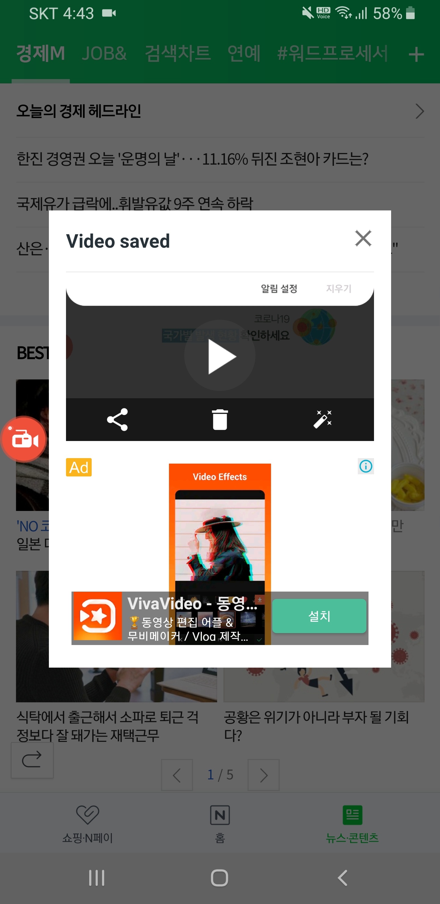 AZ 스크린 레코더로 네이버 앱 녹화 화면