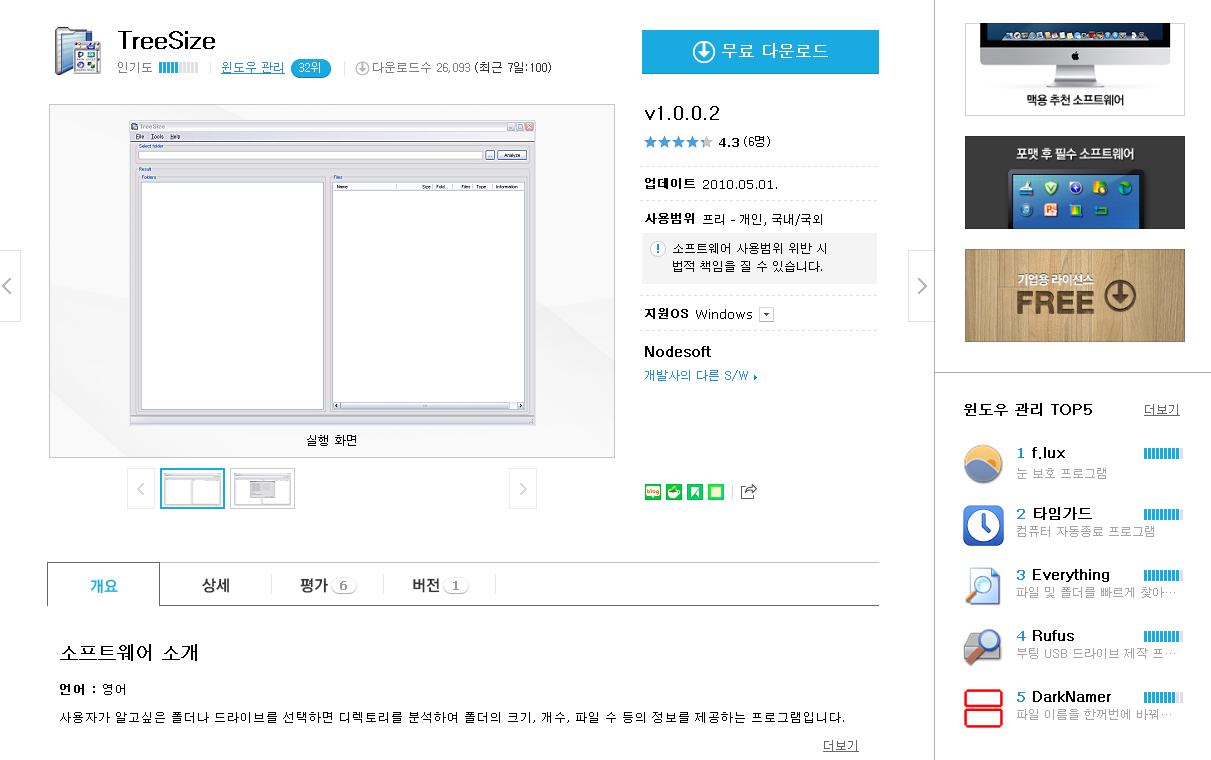 먼저 용량 정리하기 전 프로그램을 하나 사용하자면 TreeSize라는 프로그램입니다. 사이트 검색을 통해서 쉽게 다운로드할 수 있고요. 드라이브의 용량을 퍼센티지와 GB로 보기 쉽게 보여줘서 굉장히 정리하기 편합니다.