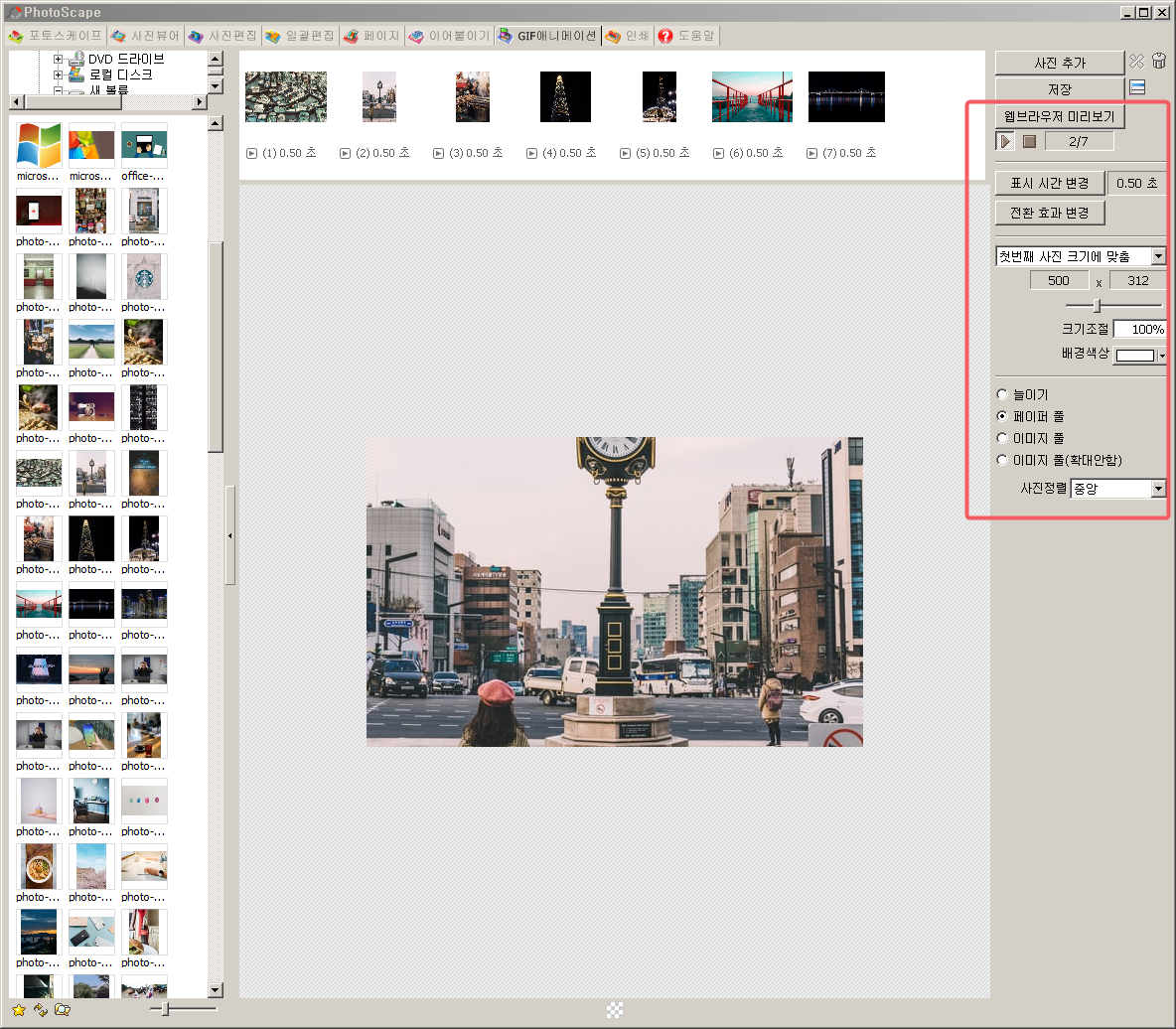첫 화면을 보시면 아이콘이 나열되어있는데 오른쪽에 GIF 애니메이션이 보이실 거예요. 클릭해서 들어가면 됩니다. 그 외에도 포토스케이프는 많은 기능이 있는데요. 천천히 하나씩 소개해 드리겠습니다.