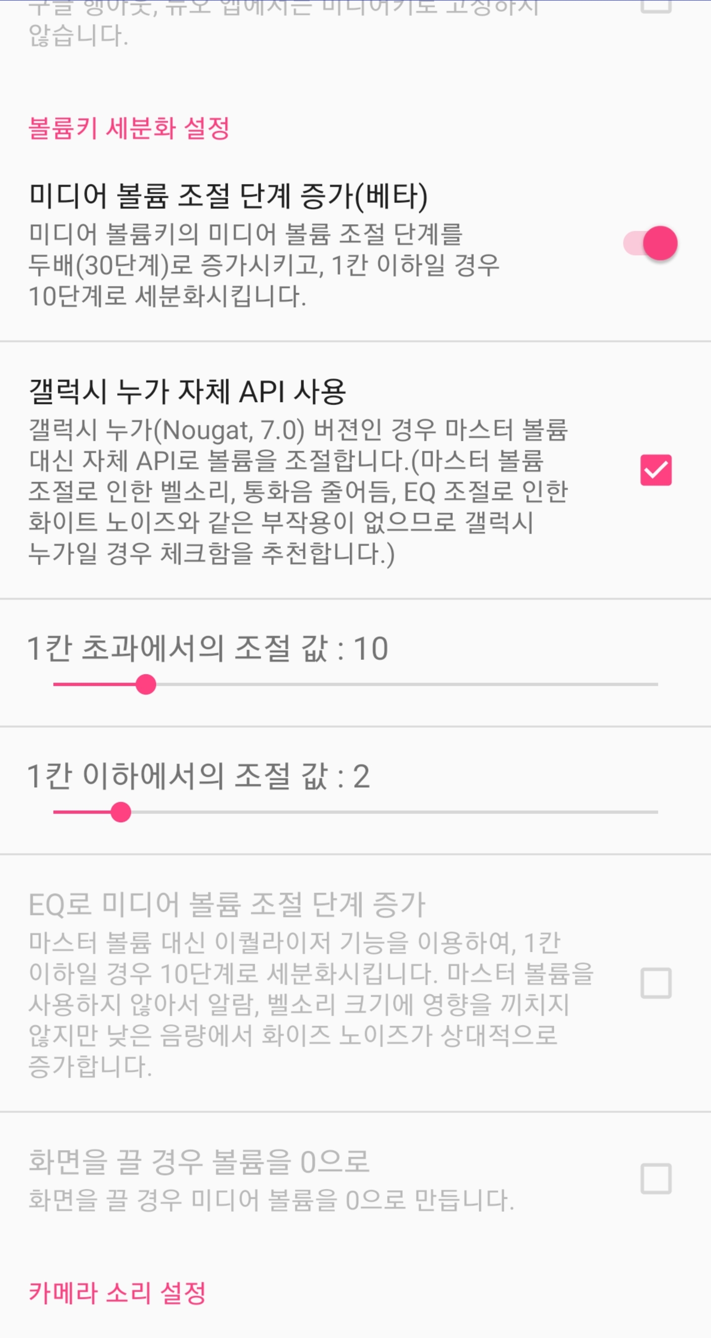 다른 방법으로는 음악이나 유튜브 시청할 때 소리가 너무 커서 누군가가 듣게 돼서 방해가 된다면 최저 음량을 세분화해서 아주 작은 소리로 소리를 들을 수 있습니다. 사용하는 방법에 따라 굉장히 유용하게 사용될 것 같습니다.