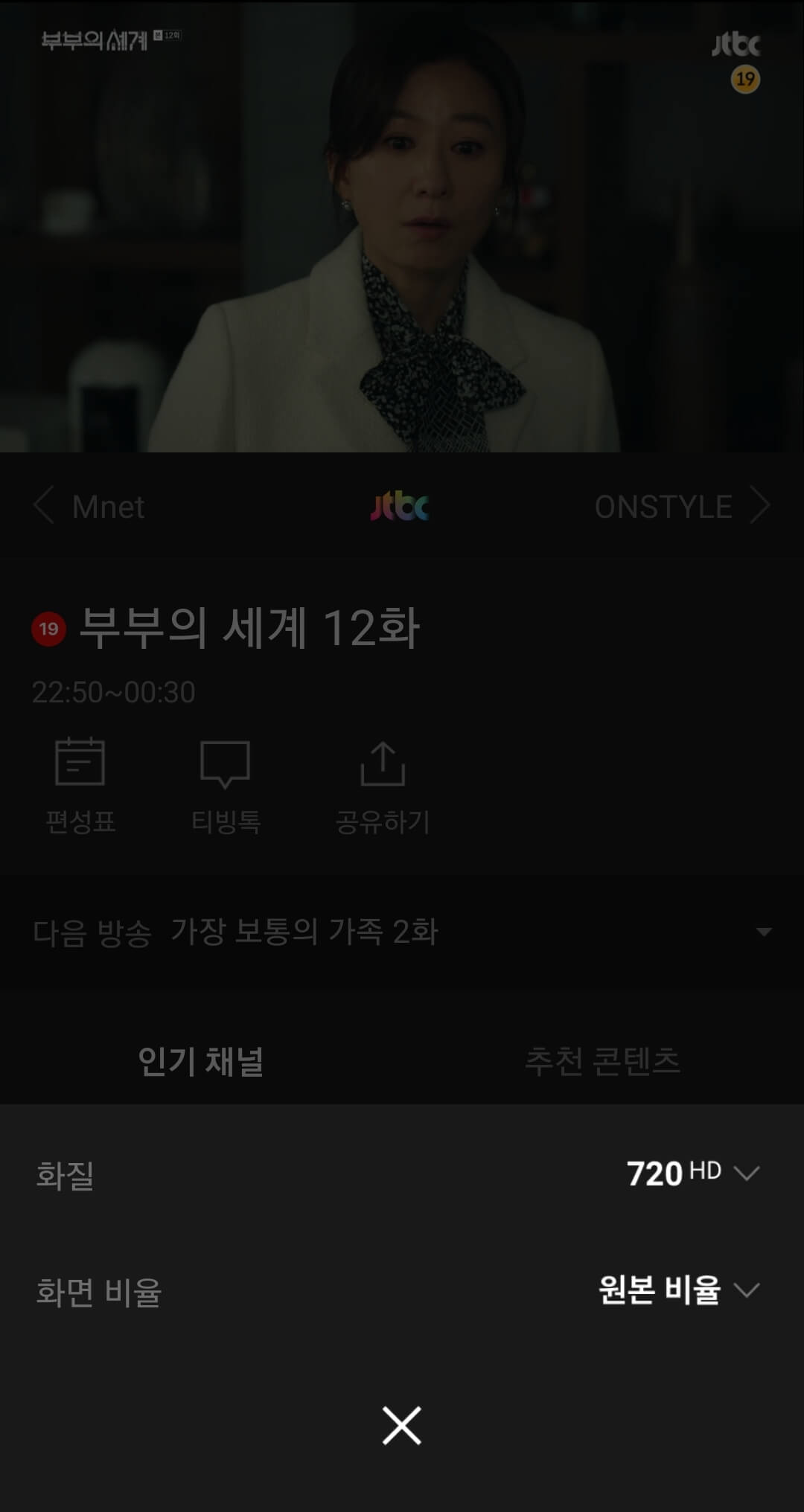 개인적으로 부부의세계를 보기위해 짱티비씨 온에어에서 다시보기나 실시간 감상 사이트를 찾아보다가 알게된 티빙이라는 사이트가 더욱 좋은것을 느꼈습니다. 이유는 제이티비씨의 경우 360p를 제공합니다.